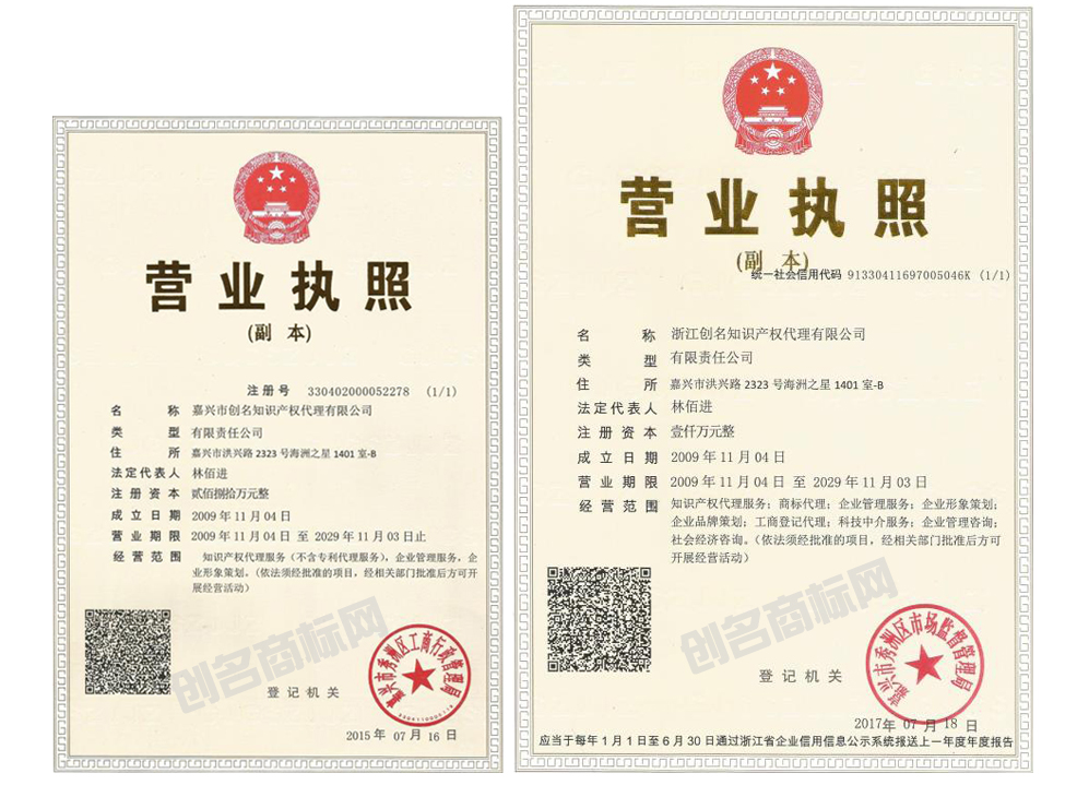 [01-14]热烈祝贺嘉兴市创名知识产权代理有限公司升级为浙江创名知识产权